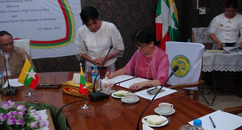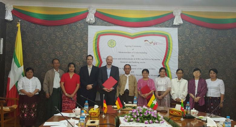 ၁။ မြန်မာနိုင်ငံ၏ ငွေရေးကြေးရေးနှင့် ဘဏ်လုပ်ငန်းကဏ္ဍတွင် International Financial Reporting Standards (IFRS) နှင့် International Standards on Auditing (ISA) တို့ကို အကောင်အထည်ဖော် လိုက်နာဆောင်ရွက်ရေးအတွက် ပြည်ထောင်စုစာရင်းစစ်ချုပ်ရုံးနှင့် ဂျာမန်နည်းပညာပူးပေါင်းဆောင်ရွက်ရေးအဖွဲ့ (GIZ) တို့အကြား နောက်ထပ်အကျိုးတူ ပူးပေါင်းဆောင်ရွက်မှုများ ပြုလုပ်နိုင်ရန်အတွက် ပြည်ထောင်စုစာရင်းစစ်ချုပ်ရုံးနှင့် GIZ အဖွဲ့တို့ သည် ၂၀၁၆ ခုနှစ်၊ မတ်လ (၁၆) ရက်နေ့တွင် ပြည်ထောင်စုစာရင်းစစ်ချုပ်ရုံး၊ နေပြည်တော်၌ နားလည်မှု စာချွန်လွှာကို လက်မှတ်ရေးထိုးခဲ့ကြပါသည်။