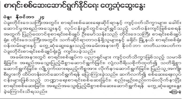 ပဲခူးတိုင်းဒေသကြီးအတွင်း စာရင်းစစ်ဆေးဆောင်ရွက်နိုင်ရေးတွေ့ဆုံဆွေးနွေးခြင်း