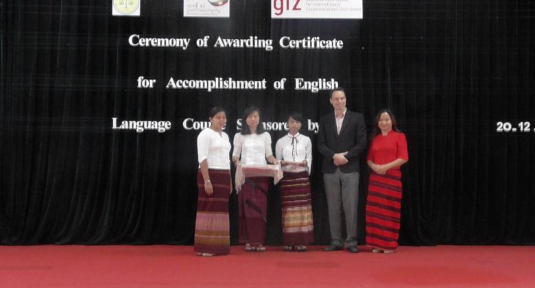 သင်တန်း ပြီးမြောက်ကြောင်း လက်မှတ်ပေးအပ်သည့် အခမ်းအနားကို ၂၀-၁၂-၂၀၁၆ ရက်နေ့တွင် ဤရုံး၌ ကျင်းပခဲ့ပြီး GIZ၏ Head of Component ဖြစ်သူ Mr.AnthonyDeary မှ သင်တန်းသားများအား သင်တန်း ပြီးမြောက်ကြောင်း လက်မှတ်များ ပေးအပ်ချီးမြှင့်ခဲ့ပါသည်။