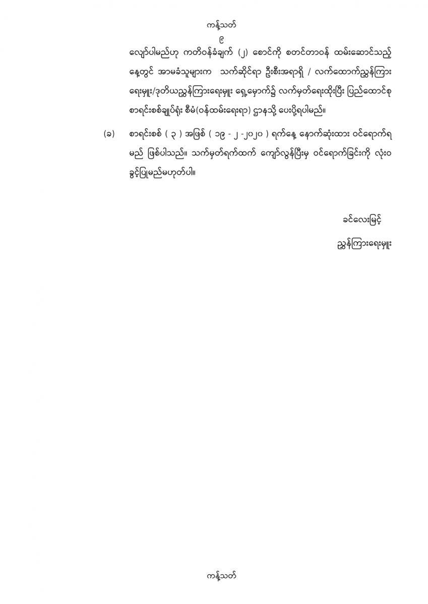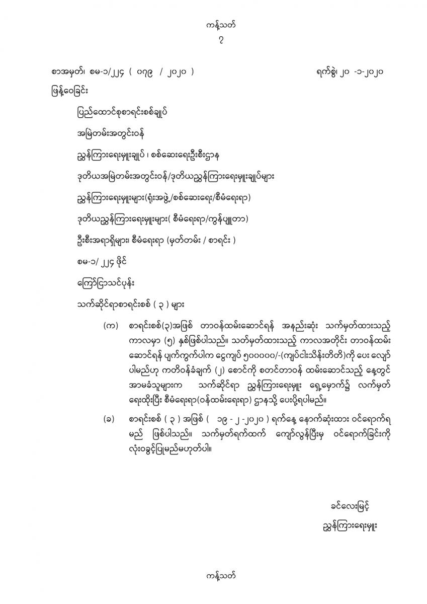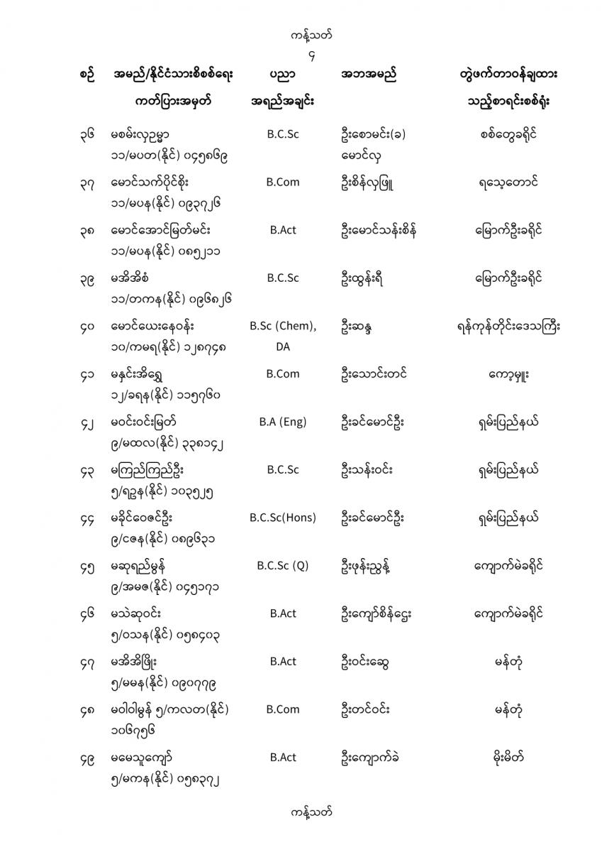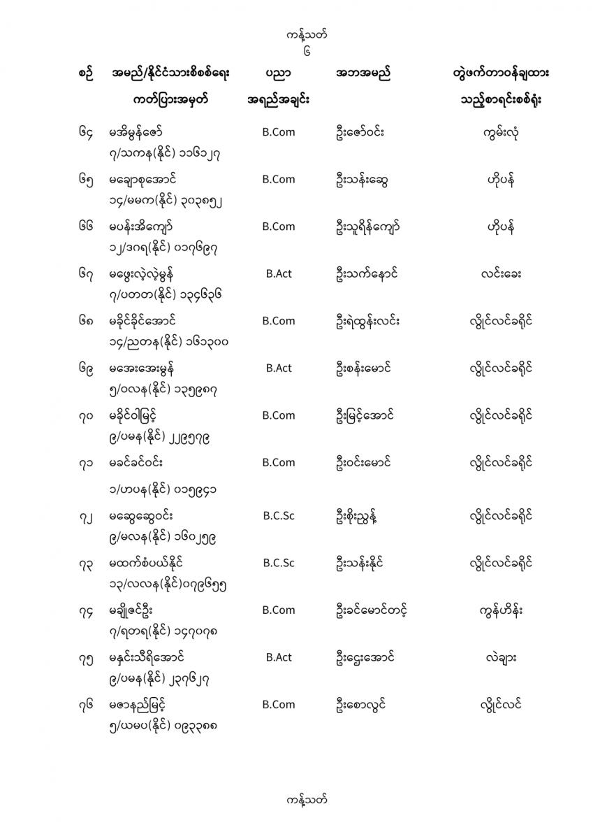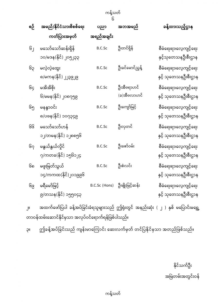 ပြည်ထောင်စုစာရင်းစစ်ချုပ်ရုံး၊ တိုင်းဒေသကြီး/ ပြည်နယ်စာရင်းစစ်ချုပ်ရုံးများနှင့် ဒေသစာရင်းစစ်ရုံးများတွင် စာရင်းစစ်(၃) ချိန်နှုန်းလစာ (ကျပ် ၁၉၈၀၀၀-၂၀၀၀-၂၀၈၀၀၀) ရာထူးအတွက် ဝန်ထမ်းသစ်များခန့်ထားခြင်း