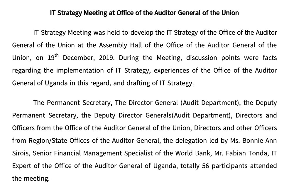 ပြည်ထောင်စုစာရင်းစစ်ချုပ်ရုံးတွင် IT Strategy Meeting ကျင်းပပြုလုပ်ခြင်း