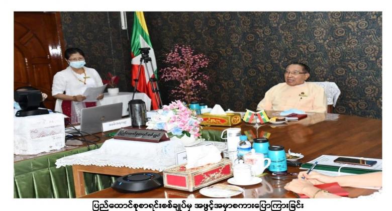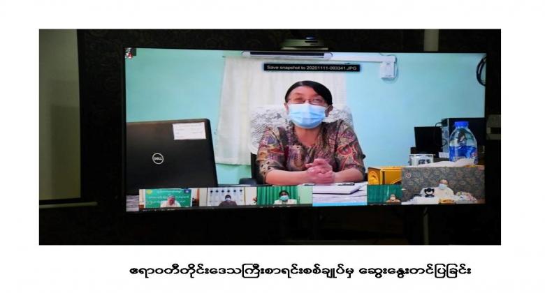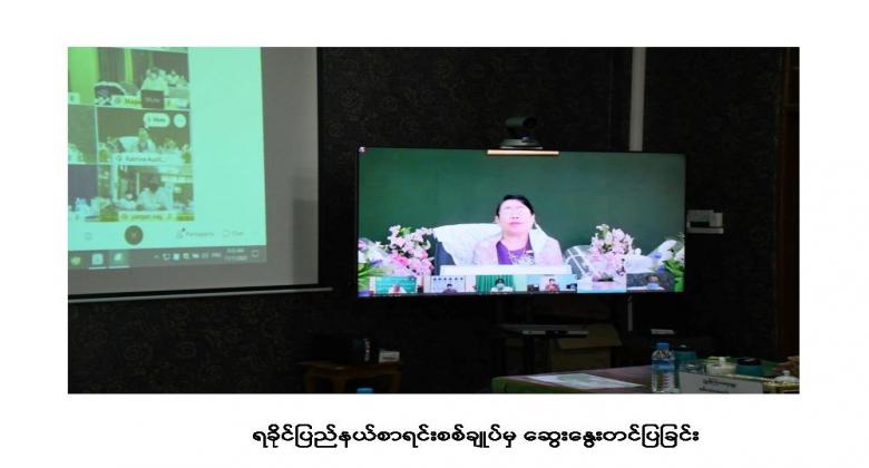 ၄။ ထို့နောက် လုပ်ငန်းညှိနှိုင်းဆွေးနွေးပွဲတွင် တိုင်းဒေသကြီး/ ပြည်နယ်စာရင်းစစ်ချုပ် များမှ Video Conferencing စနစ်ဖြင့် ဆွေးနွေးတင်ပြကြပါသည်။
