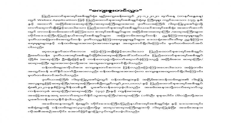 ပြည်ထောင်စုစာရင်းစစ်ချုပ်ရုံးမှ ကြီးမှူးကျင်းပသော တာဝန်ထမ်းဆောင်ဆဲနှင့် အငြိမ်းစား ပြည်ထောင်စုစာရင်းစစ်ချုပ်များ၊ ဒုတိယစာရင်းစစ်ချုပ်နှင့် ပထမသက်တမ်းတွင် တာဝန်ထမ်းဆောင်ခဲ့ကြသည့် တိုင်းဒေသကြီး/ပြည်နယ်စာရင်းစစ်ချုပ်များ၊ ယခင်စာရင်းစစ် ရုံးအဆက်ဆက်တွင် တာဝန်ထမ်းဆောင်ခဲ့ကြသည့် ရုံးအကြီးအကဲများ၊အသက် (၇၅)နှစ်နှင့် အထက် (ဒုတိယညွှန်ကြားရေးမှူး နှင့် အထက် ) သက်ကြီးဝါကြီး ဆရာသမားများအား ပူဇော် ကန်တော့သည့် အခမ်းအနားကို၂၇-၁၂-၂၀၂၀ ရက်နေ့ နံနက် (၁၀း၀၀နာရီ)တွင် ပြည်ထောင် စုစာရင်းစစ်ချုပ်ရုံး၊ အစည်းအဝေးခမ်းမ၌ Virtual Ceremory ဖြင့် ကျင်းပခဲ့ပါသည်။