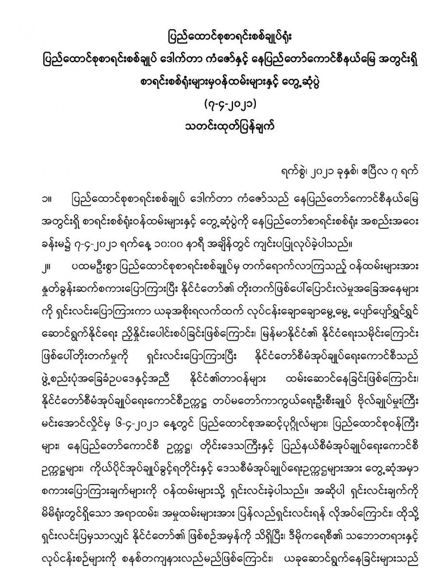 ၇-၄-၂၀၂၁ ရက်နေ့တွင် ပြည်ထောင်စုစာရင်းစစ်ချုပ် ဒေါက်တာကံဇော်နှင့် နေပြည်တော်ကောင်စီနယ်မြေအတွင်းရှိ စာရင်းစစ်ရုံးများမှဝန်ထမ်းများနှင့် တွေ့ဆုံပွဲကျင်းပခြင်း