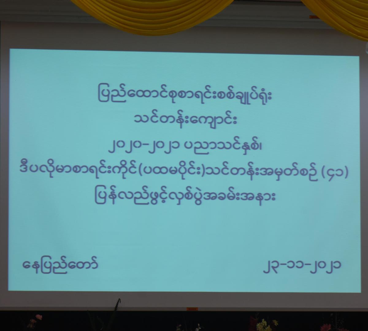 ၂၃-၁၁-၂၀၂၁ ရက်နေ့တွင် ဒီပလိုမာစာရင်းကိုင် (ပထမပိုင်း) သင်တန်းအမှတ်စဉ် - ၄၁ ပြန်လည်ဖွင့်လှစ်ပွဲအခမ်းအနားကျင်းပခြင်း