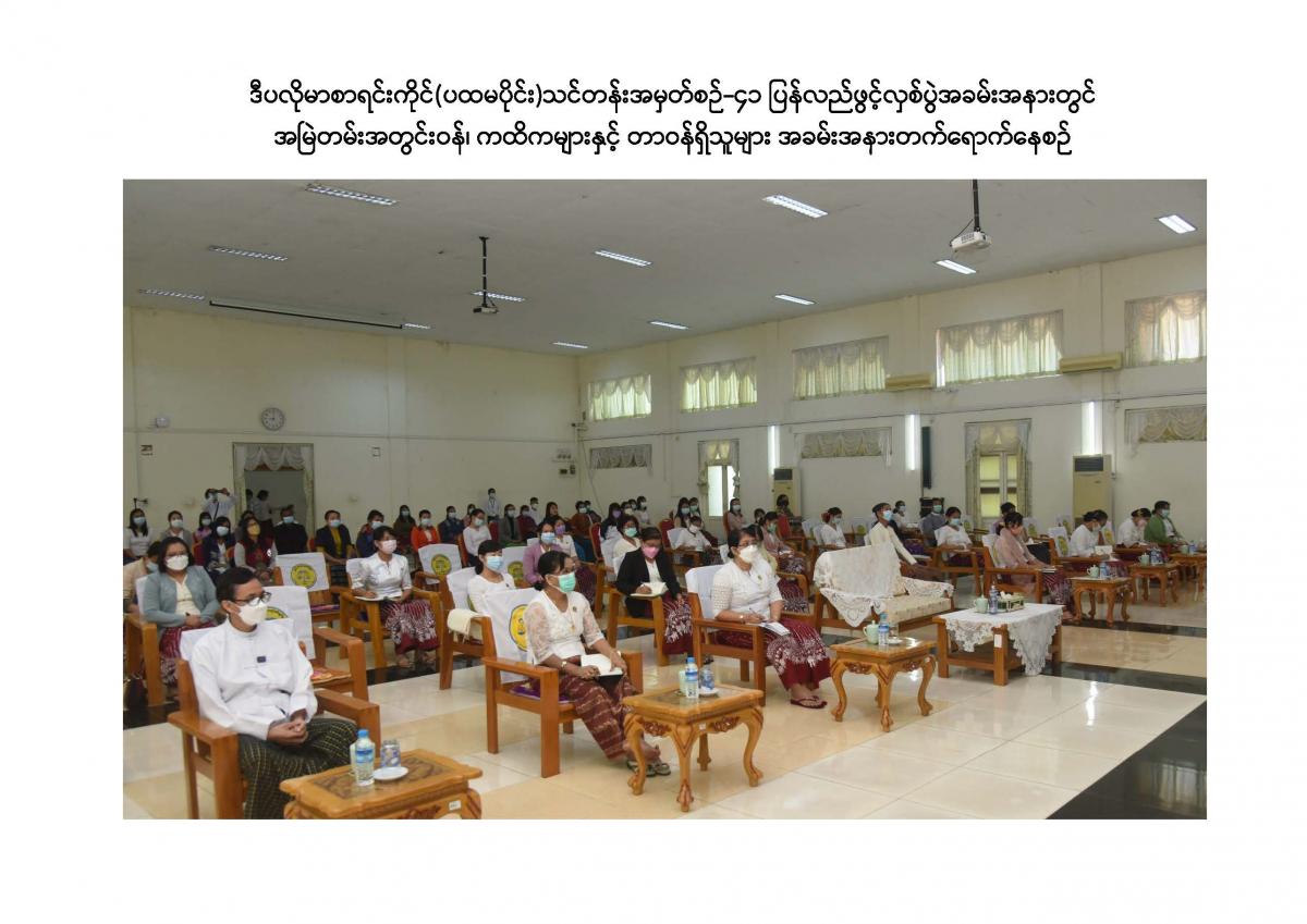 ၁။        ၂၀၂၁ ခုနှစ်၊ နိုဝင်ဘာလ ၂၃ ရက် နံနက် (၀၉:၀၀) နာရီတွင် ပြည်ထောင်စုစာရင်းစစ်ချုပ်ရုံး၊ စုပေါင်းခန်းမ၌ ဒီပလိုမာစာရင်းကိုင်(ပထမပိုင်း) သင်တန်းအမှတ်စဉ် - ၄၁ ပြန်လည်ဖွင့်လှစ်ပွဲ အခမ်းအနားကျင်းပခဲ့ရာ  မြန်မာနိုင်ငံ စာရင်းကောင်စီဥက္ကဋ္ဌ၊ ပြည်ထောင်စုစာရင်းစစ်ချုပ်တက်ရောက်၍ သင်တန်းဖွင့်အမှာစကား ပြောကြားပါသည်။