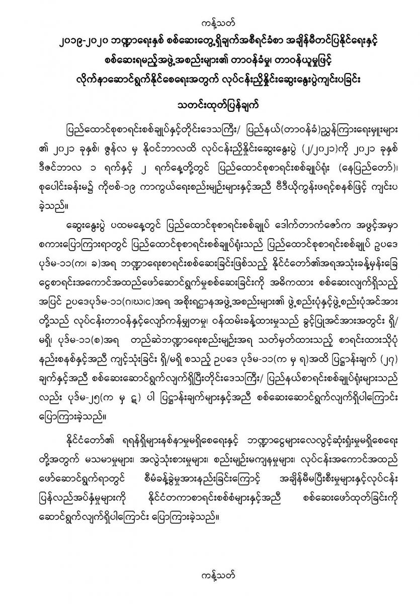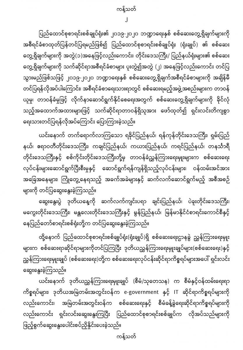 ၁-၁၂-၂၀၂၁ နေ့နှင့် ၂-၁၂-၂၀၂၁ နေ့တို့တွင် ပြည်ထောင်စုစာရင်းစစ်ချုပ်နှင့် တိုင်းဒေသကြီး/ ပြည်နယ်(တာဝန်ခံ) ညွှန်ကြားရေးမှူးများ လုပ်ငန်းညှိနှိုင်းဆွေးနွေးပွဲ (၂/၂၀၂၁) ကျင်းပခြင်း