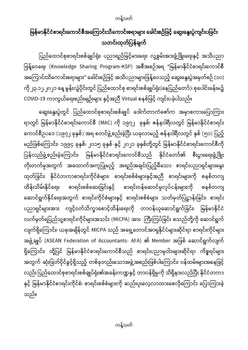 ၂၃-၁၂-၂၀၂၁ ရက်နေ့တွင် မြန်မာနိုင်ငံစာရင်းကောင်စီအကြောင်းသိကောင်းစရာများ ခေါင်းစဉ်ဖြင့် ဆွေးနွေးပွဲကျင်းပခြင်း