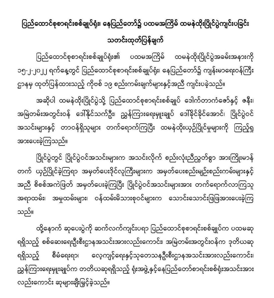 ၁၅-၂-၂၀၂၂ ရက်နေ့တွင် ပြည်ထောင်စုစာရင်းစစ်ချုပ်ရုံး၊ နေပြည်တော်၌ ပထမအကြိမ် ထမနဲထိုးပြိုင်ပွဲကျင်းပခြင်း