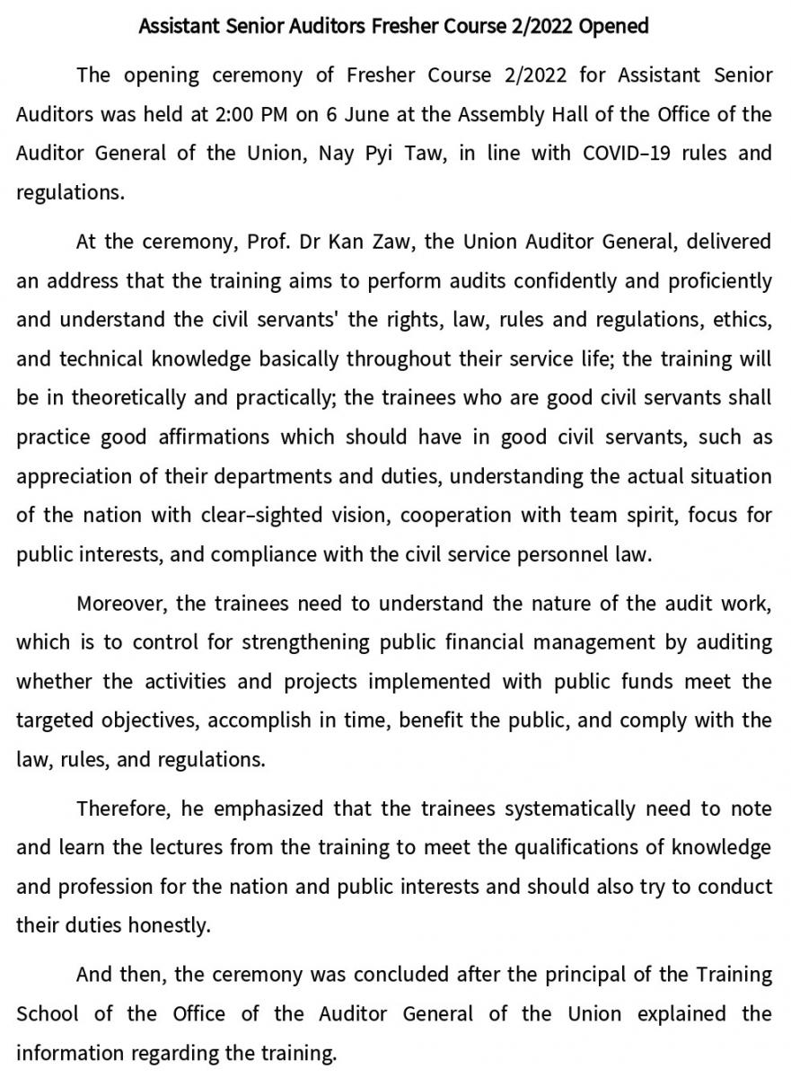 Assistant Senior Auditors Fresher Course 2/2022 Opened