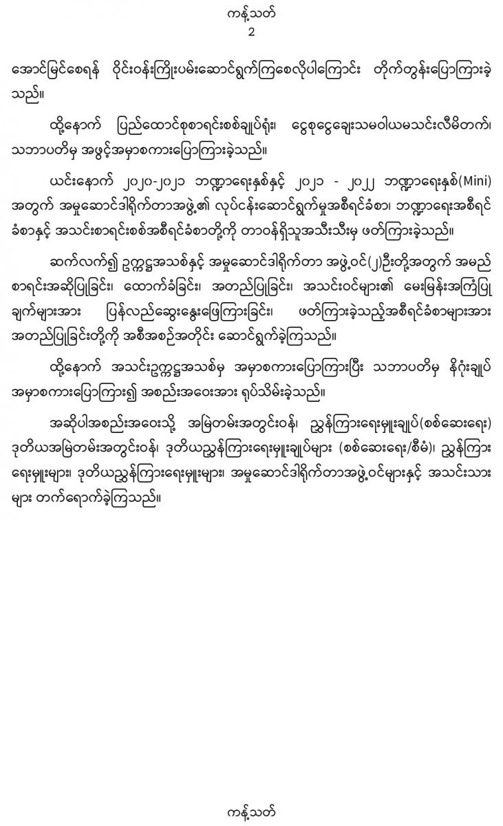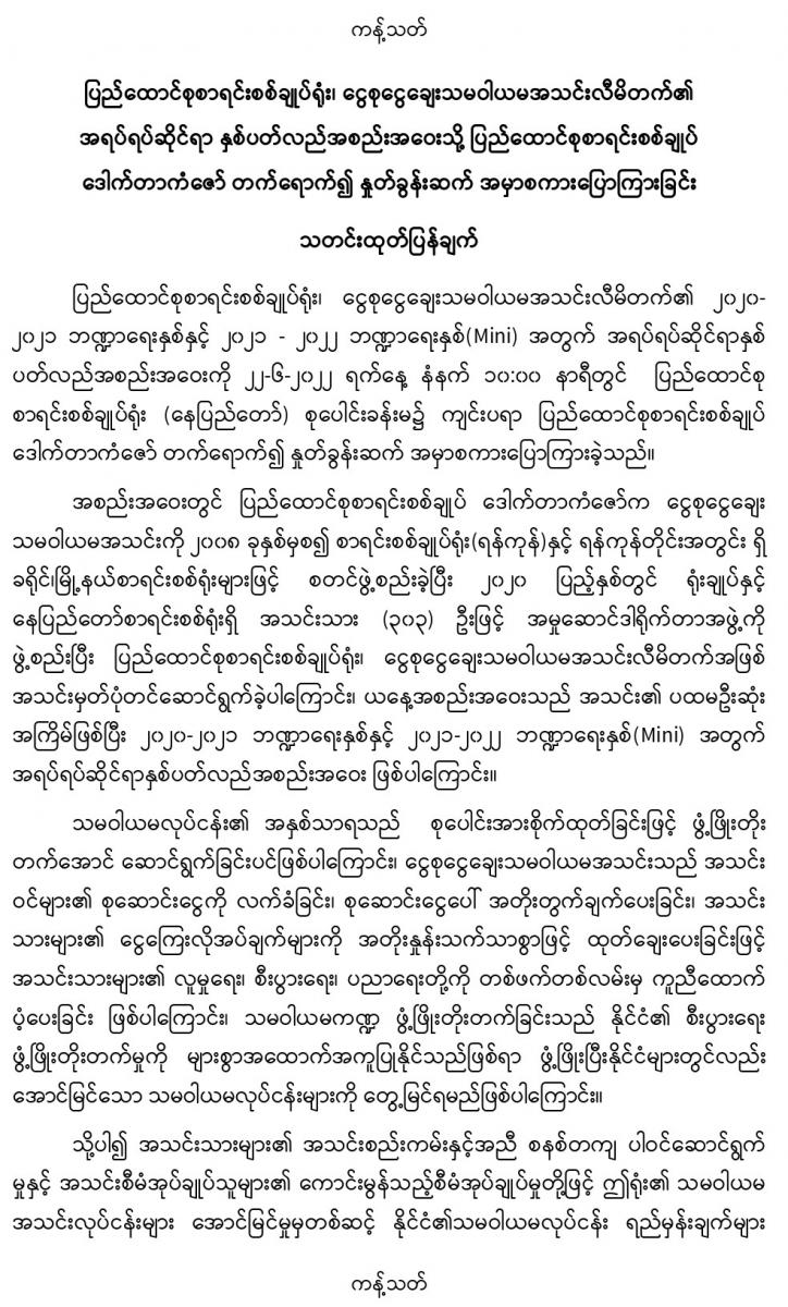 ၂၂-၆-၂၀၂၂ ရက်နေ့တွင် ပြည်ထောင်စုစာရင်းစစ်ချုပ်ရုံး၊ ငွေစုငွေချေးသမဝါယမအသင်းလီမိတက်၏ အရပ်ရပ်ဆိုင်ရာ နှစ်ပတ်လည်အစည်းအဝေးသို့ ပြည်ထောင်စုစာရင်းစစ်ချုပ် ဒေါက်တာကံဇော် တက်ရောက်၍ နှုတ်ခွန်းဆက် အမှာစကားပြောကြားခြင်း