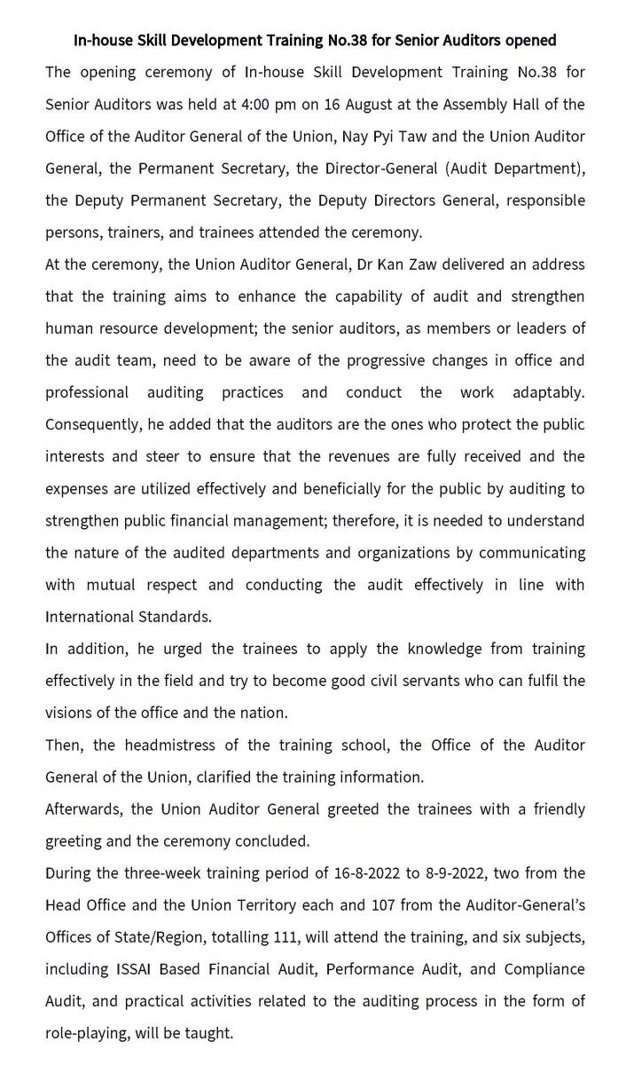 In-house Skill Development Training No.38 for Senior Auditors opened