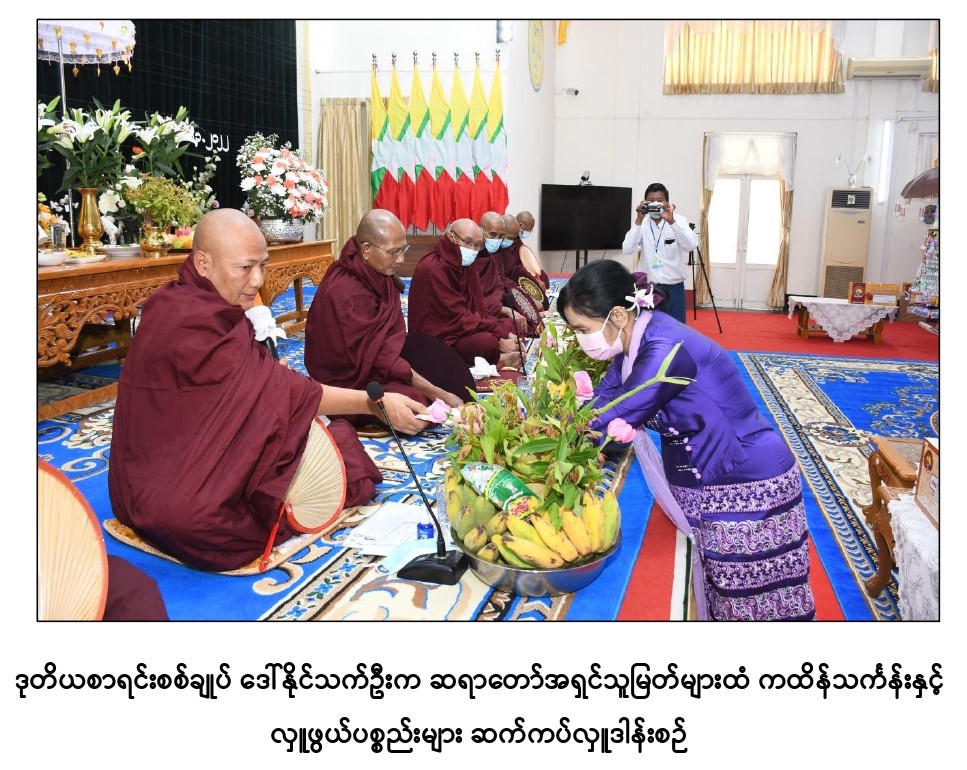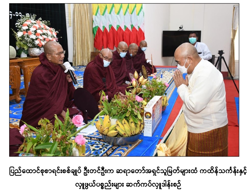 ၄-၁၁-၂၀၂၂ ရက်နေ့တွင် ပြည်ထောင်စုစာရင်းစစ်ချုပ်ရုံးဝန်ထမ်းများ၏(၁၅) ကြိမ်မြောက် မဟာဘုံကထိန်သင်္ကန်း ဆက်ကပ်လှူဒါန်းပွဲ အခမ်းအနားကျင်းပခြင်း