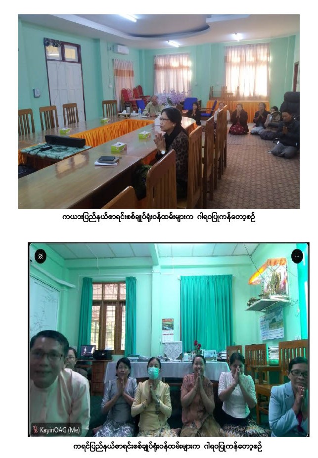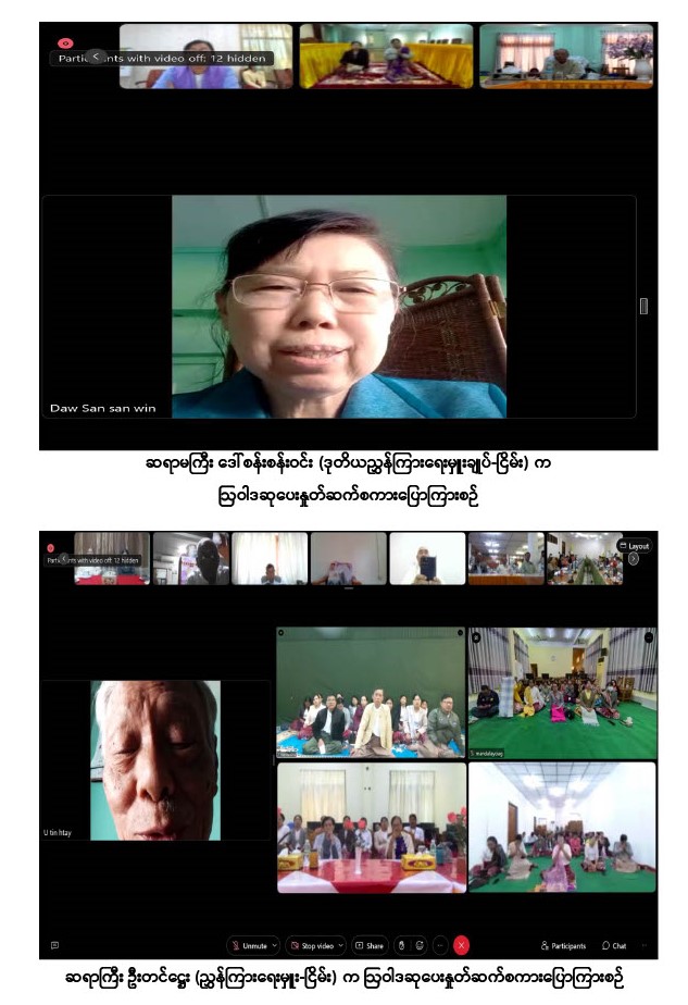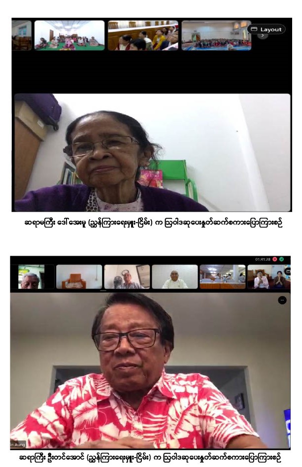 ပြည်ထောင်စုစာရင်းစစ်ချုပ်ရုံးမှ ကြီးမှူးကျင်းပသော အငြိမ်းစား ပြည်ထောင်စုစာရင်းစစ်ချုပ်များ၊ ဒုတိယစာရင်းစစ်ချုပ်နှင့် တာဝန်ထမ်းဆောင်ခဲ့ကြသည့် တိုင်းဒေသကြီး/ ပြည်နယ်စာရင်းစစ်ချုပ်များ၊ ယခင်စာရင်းစစ်ရုံးအဆက်ဆက်တွင် တာဝန်ထမ်းဆောင်ခဲ့ကြသည့် ရုံးအကြီးအကဲများ၊ အသက် (၇၅) နှစ်နှင့်အထက်(ဒုတိယညွှန်ကြားရေးမှူးနှင့်အထက်) သက်ကြီးဝါကြီးဆရာသမားများအား ပူဇော်ကန်တော့သည့်အခမ်းအနားကို ၆ - ၁ - ၂၀၂၃ ရက်နေ့ နံနက် ၉ နာရီတွင် ပြည်ထောင်စုစာရင်းစစ်ချုပ်ရုံး၊ အစည်းအဝေးခန်းမ၌ Virtual System ဖြင့် ကျင်းပခဲ့သည်။