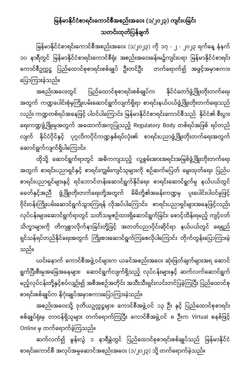 ၁၇-၂-၂၀၂၃ ရက်နေ့တွင် မြန်မာနိုင်ငံစာရင်းကောင်စီအစည်းအဝေး (၁/၂၀၂၃) ကျင်းပခြင်း
