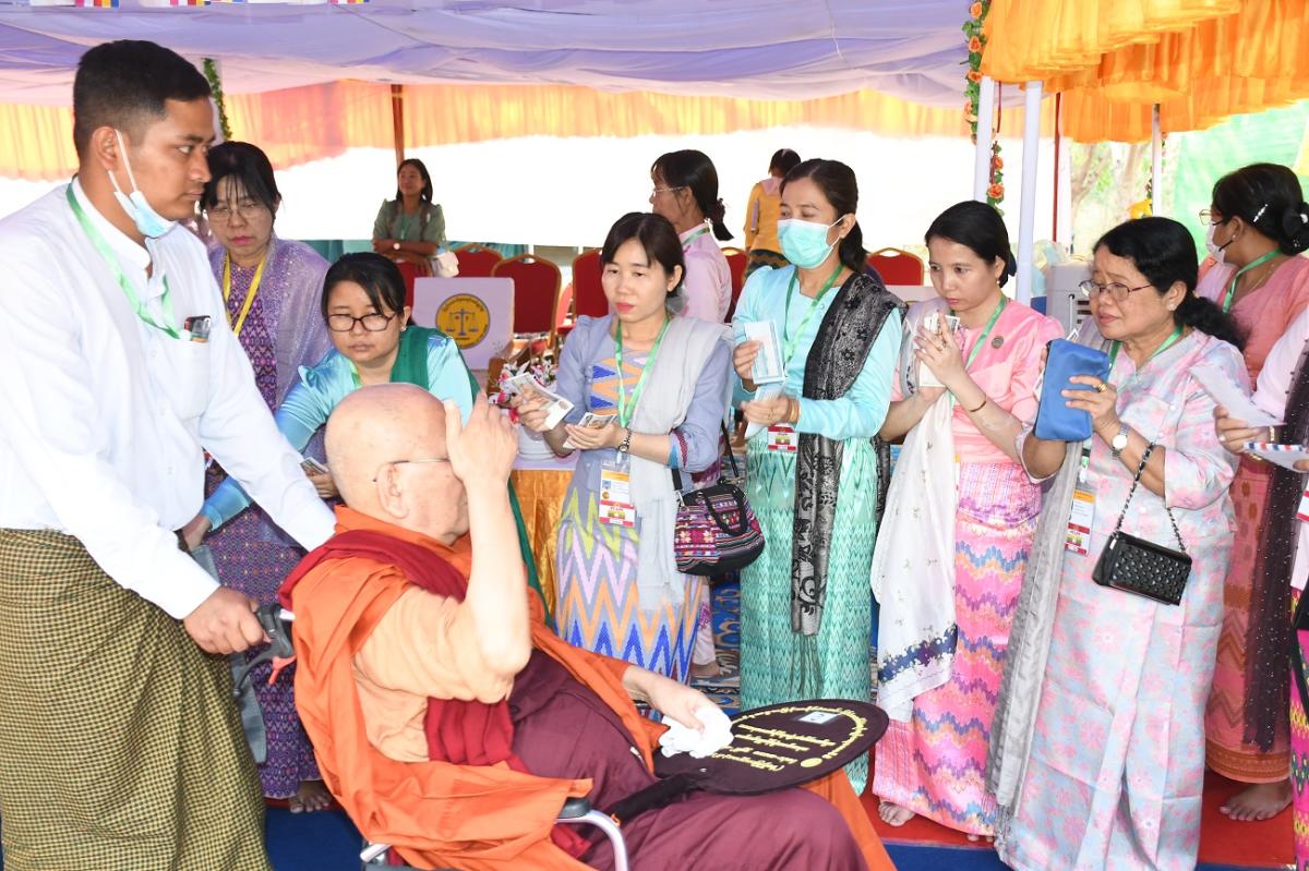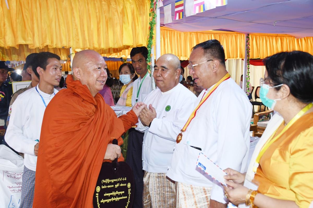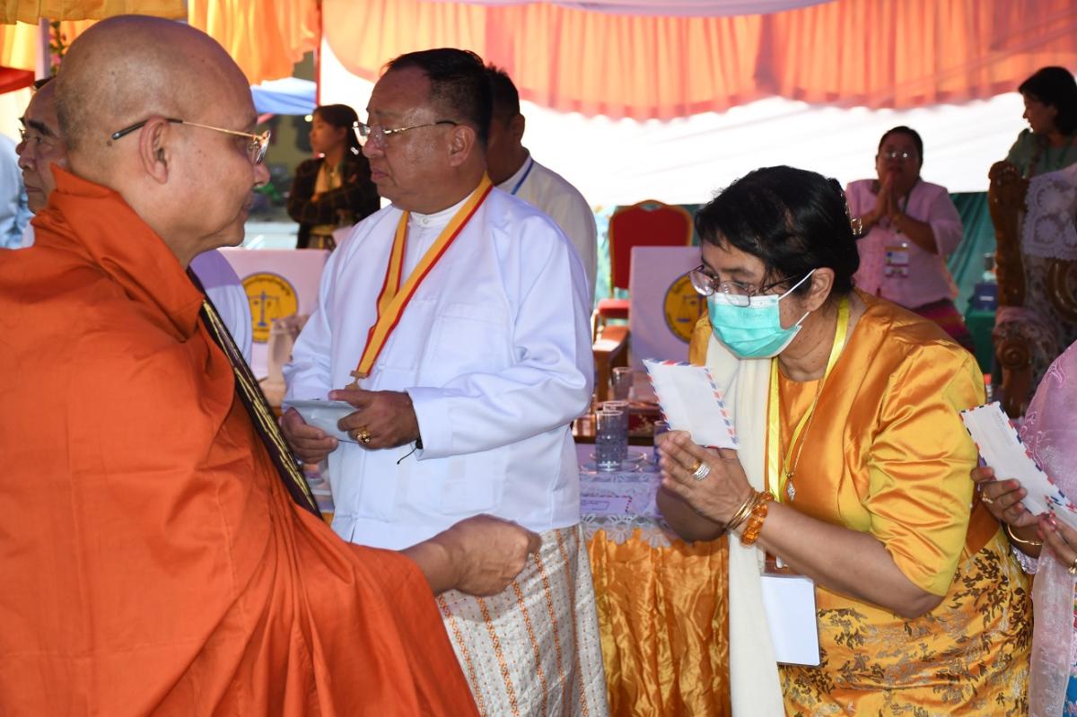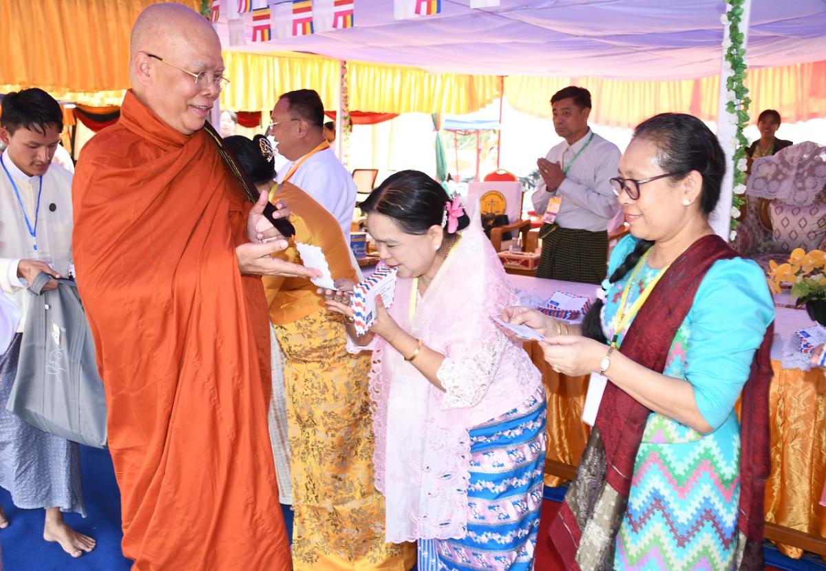 ၅-၃-၂၀၂၃ ရက်နေ့တွင် ၂၀၂၃ ခုနှစ် သာသနာတော်ဆိုင်ရာ ဘွဲ့တံဆိပ်တော်များ ဆက်ကပ်ပူဇော်ပွဲ မဟာမင်္ဂလာ အခမ်းအနားသို့ ပြည်ထောင်စုစာရင်းစစ်ချုပ် တက်ရောက်ခြင်း နှင့် ဝန်ထမ်းများနှင့်အတူ ဆွမ်းဆန်တော်၊ လှူဖွယ်ပစ္စည်းများလောင်းလှူခြင်း