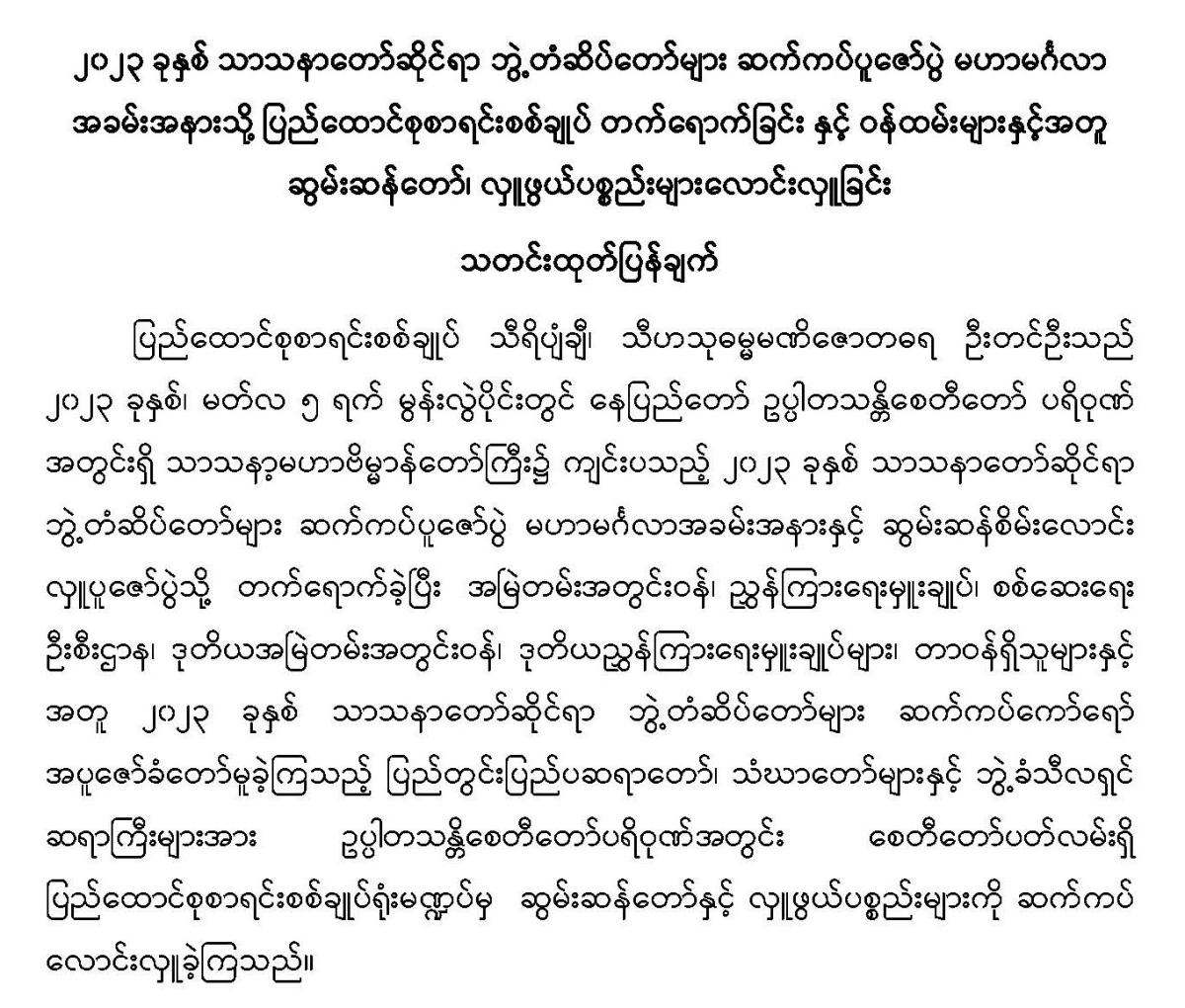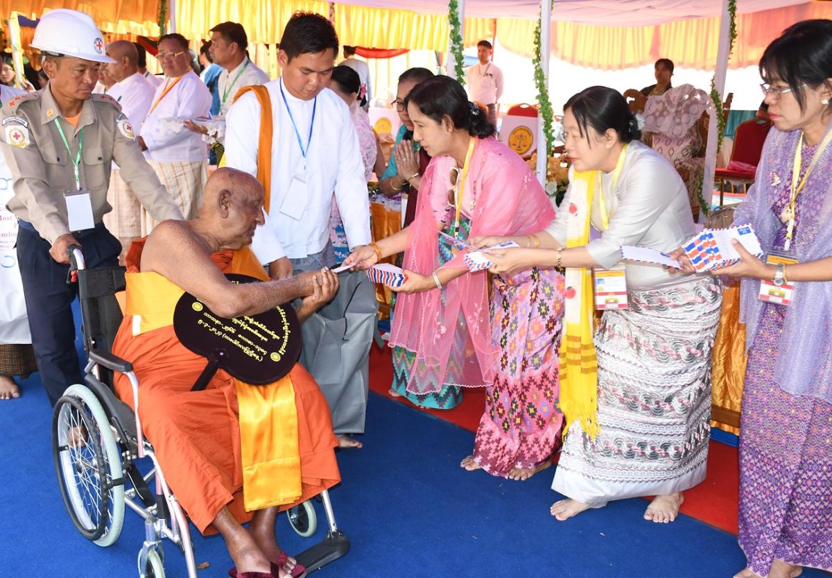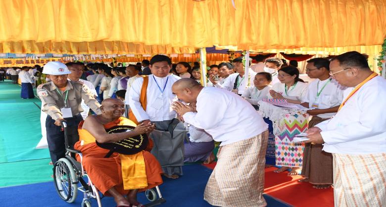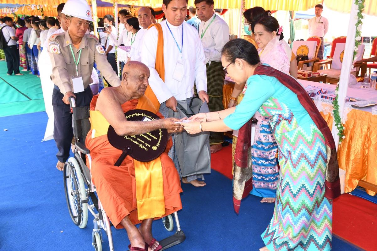 ၅-၃-၂၀၂၃ ရက်နေ့တွင် ၂၀၂၃ ခုနှစ် သာသနာတော်ဆိုင်ရာ ဘွဲ့တံဆိပ်တော်များ ဆက်ကပ်ပူဇော်ပွဲ မဟာမင်္ဂလာ အခမ်းအနားသို့ ပြည်ထောင်စုစာရင်းစစ်ချုပ် တက်ရောက်ခြင်း နှင့် ဝန်ထမ်းများနှင့်အတူ ဆွမ်းဆန်တော်၊ လှူဖွယ်ပစ္စည်းများလောင်းလှူခြင်း