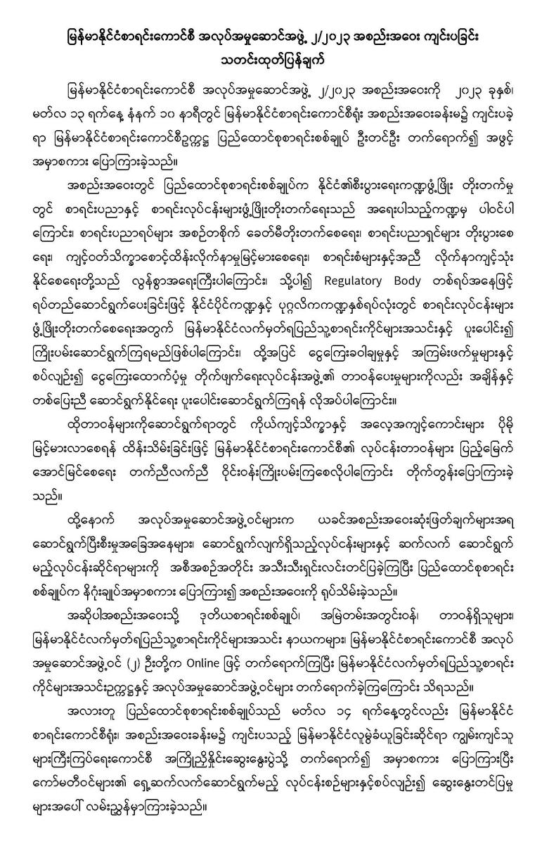 ၁၃-၃-၂၀၂၃ ရက်နေ့တွင် မြန်မာနိုင်ငံစာရင်းကောင်စီ အလုပ်အမှုဆောင်အဖွဲ့ ၂/၂၀၂၃ အစည်းအဝေး ကျင်းပခြင်း