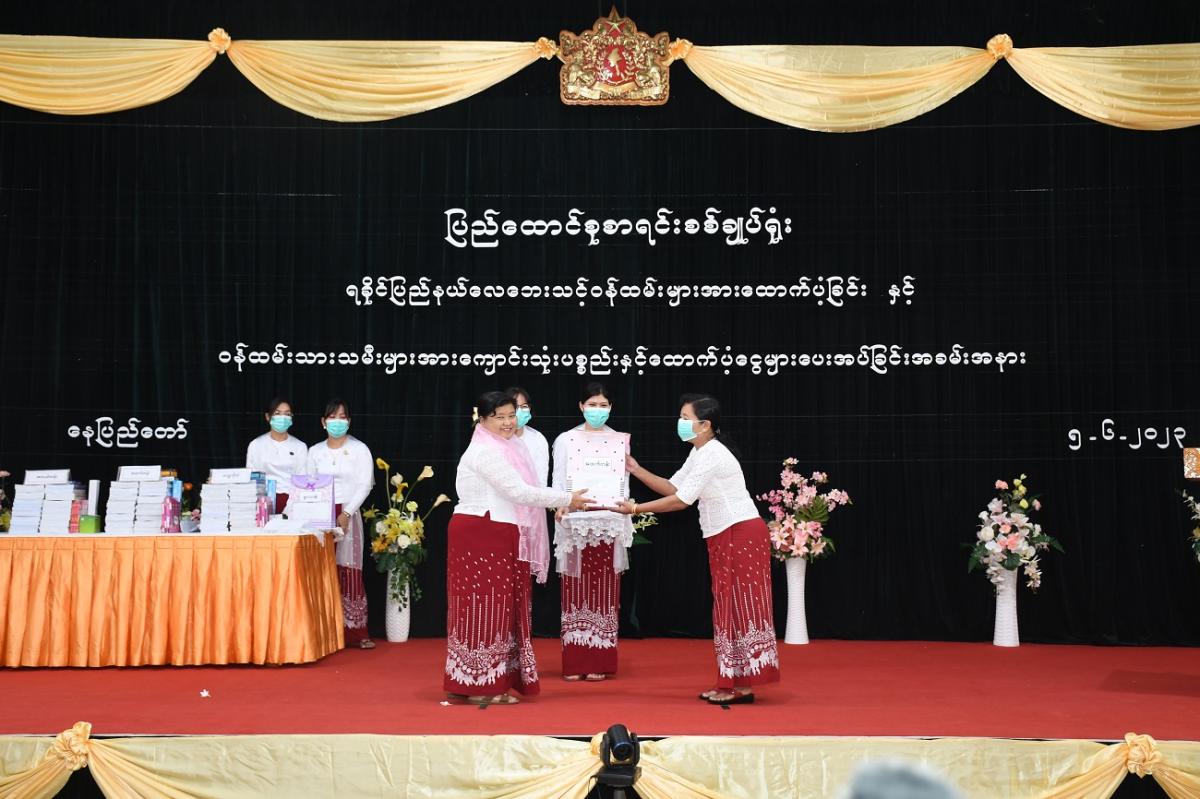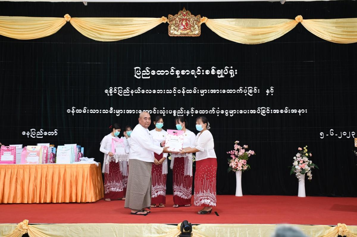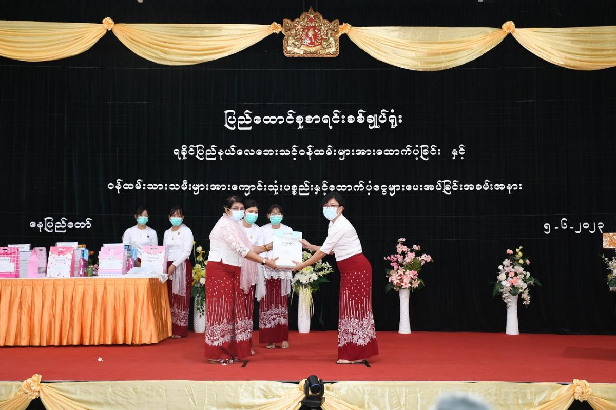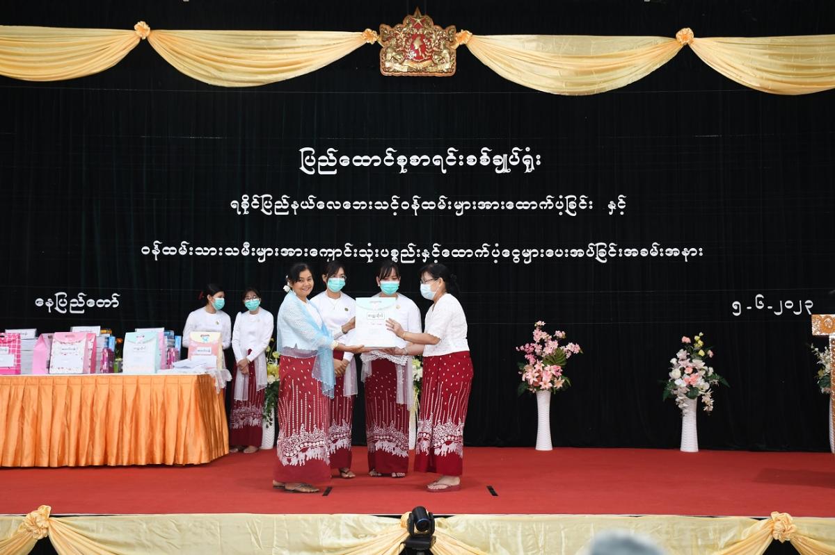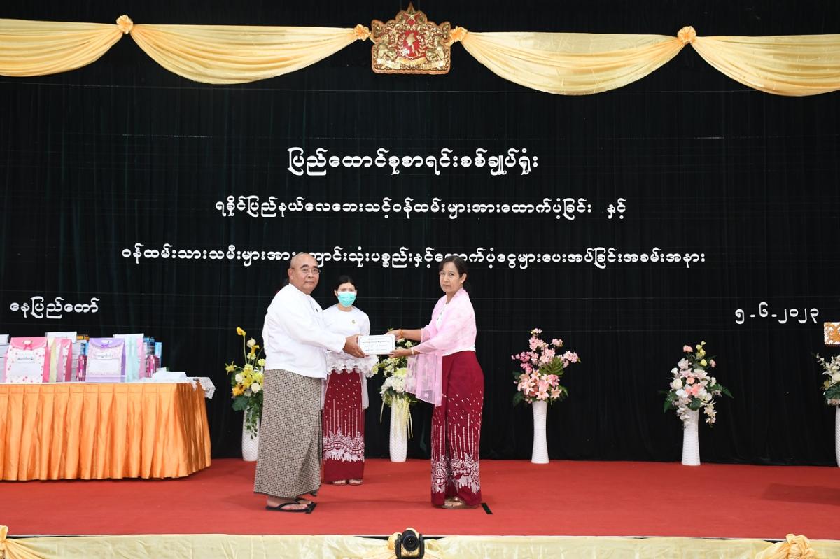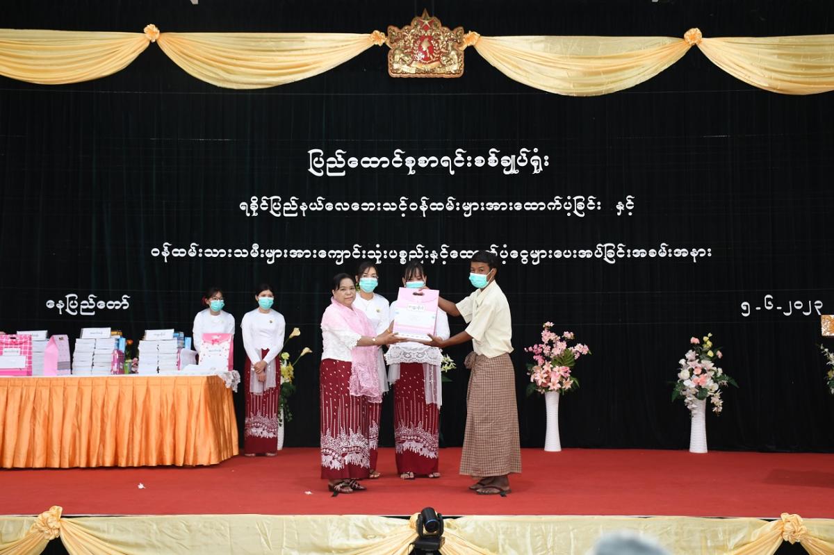 ၅-၆-၂၀၂၃ ရက်နေ့တွင် ရခိုင်ပြည်နယ် လေဘေးသင့်ဝန်ထမ်းများအား ထောက်ပံ့ခြင်းနှင့်ဝန်ထမ်းသားသမီးများအား ကျောင်းသုံးပစ္စည်းနှင့် ပညာသင်ထောက်ပံ့ငွေများ ပေးအပ်ခြင်း အခမ်းအနားကျင်းပခြင်း