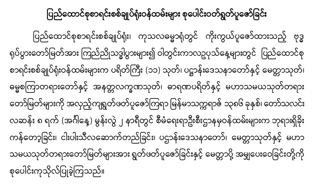 ၁၀-၉-၂၀၂၄ ရက်နေ့တွင် ပြည်ထောင်စုစာရင်းစစ်ချုပ်ရုံးဝန်ထမ်းများ စုပေါင်းဝတ်ရွတ်ပူဇော်ခြင်း