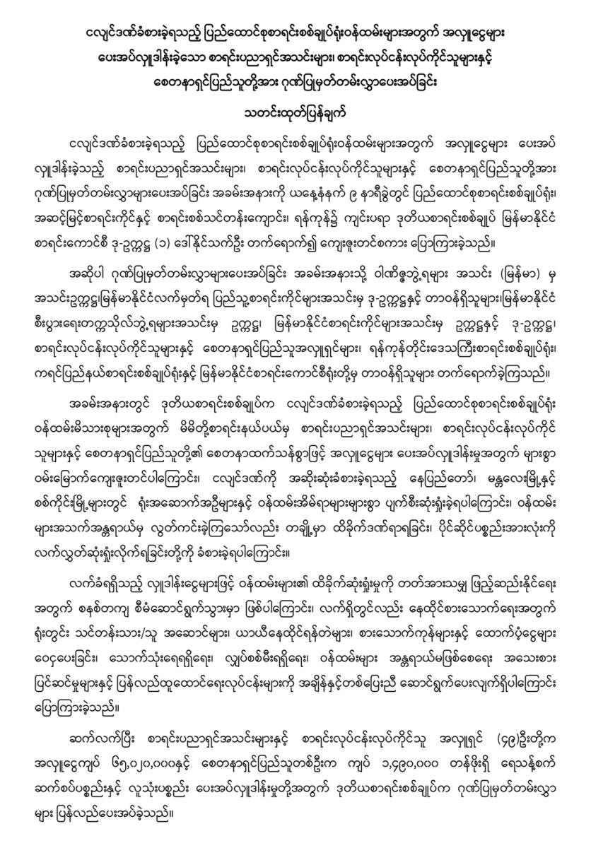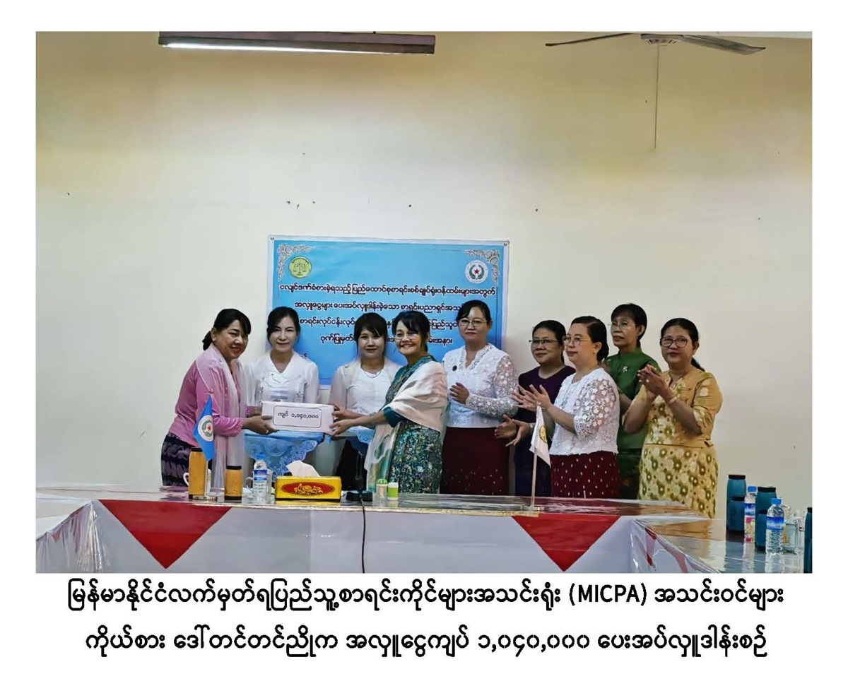 ငလျင်ဒဏ်ခံစားခဲ့ရသည့် ပြည်ထောင်စုစာရင်းစစ်ချုပ်ရုံးဝန်ထမ်းများအတွက် အလှူငွေများ ပေးအပ်လှူဒါန်းခဲ့သော စာရင်းပညာရှင်အသင်းများ၊ စာရင်းလုပ်ငန်းလုပ်ကိုင်သူများနှင့် စေတနာရှင်ပြည်သူတို့အား ဂုဏ်ပြုမှတ်တမ်းလွှာပေးအပ်ခြင်း