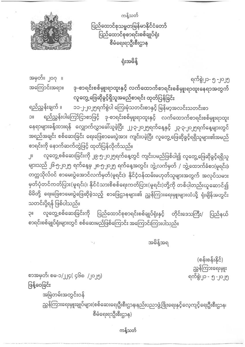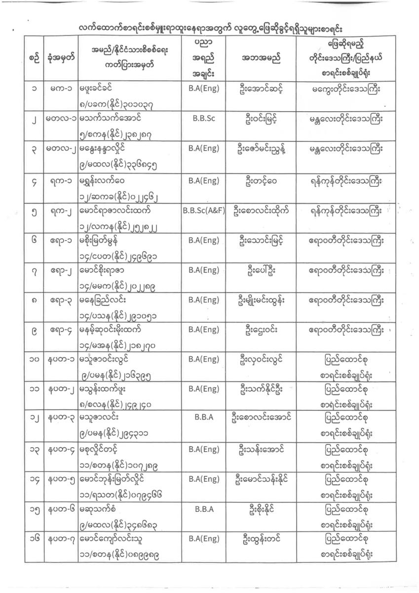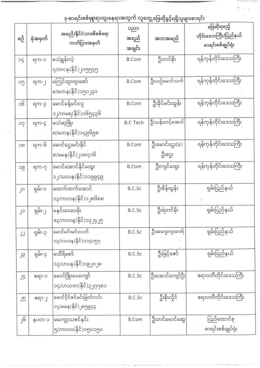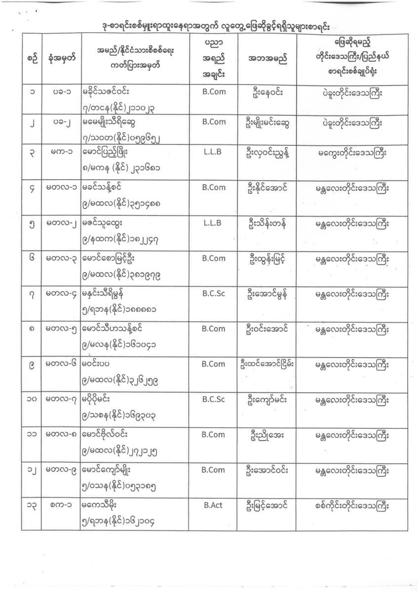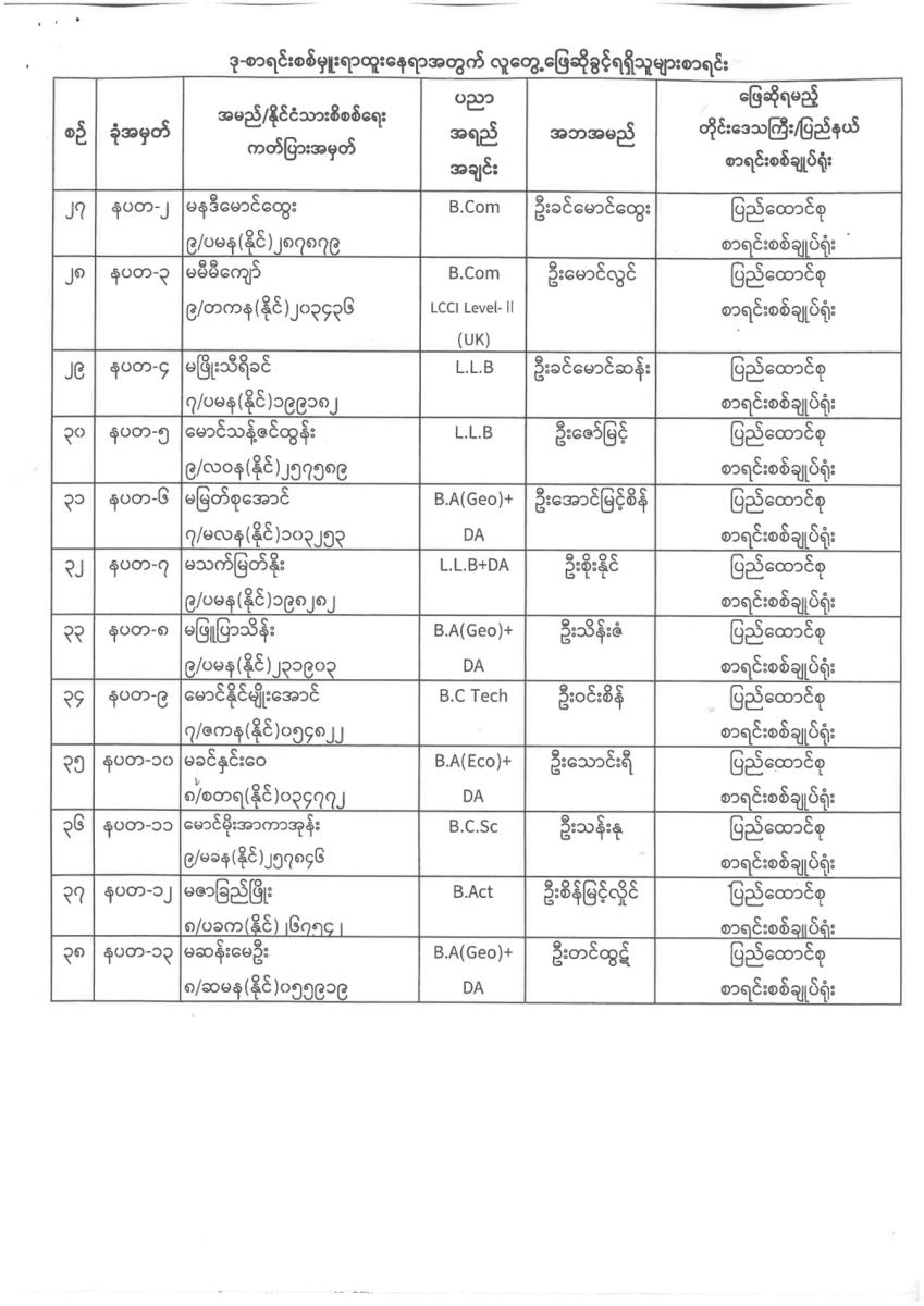 ဒုစာရင်းစစ်မှူးရာထူးနှင့်လက်ထောက်စာရင်းစစ်မှူးရာထူးနေရာအတွက် လူတွေ့ ဖြေဆိုခွင့်ရှိသူအမည်စာရင်းထုတ်ပြန်ခြင်း