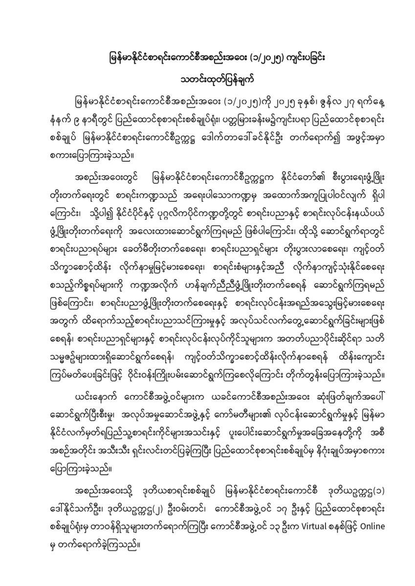 မြန်မာနိုင်ငံစာရင်းကောင်စီအစည်းအဝေး (၁/၂၀၂၅) ကျင်းပခြင်း