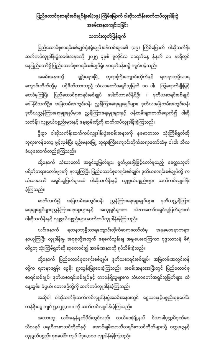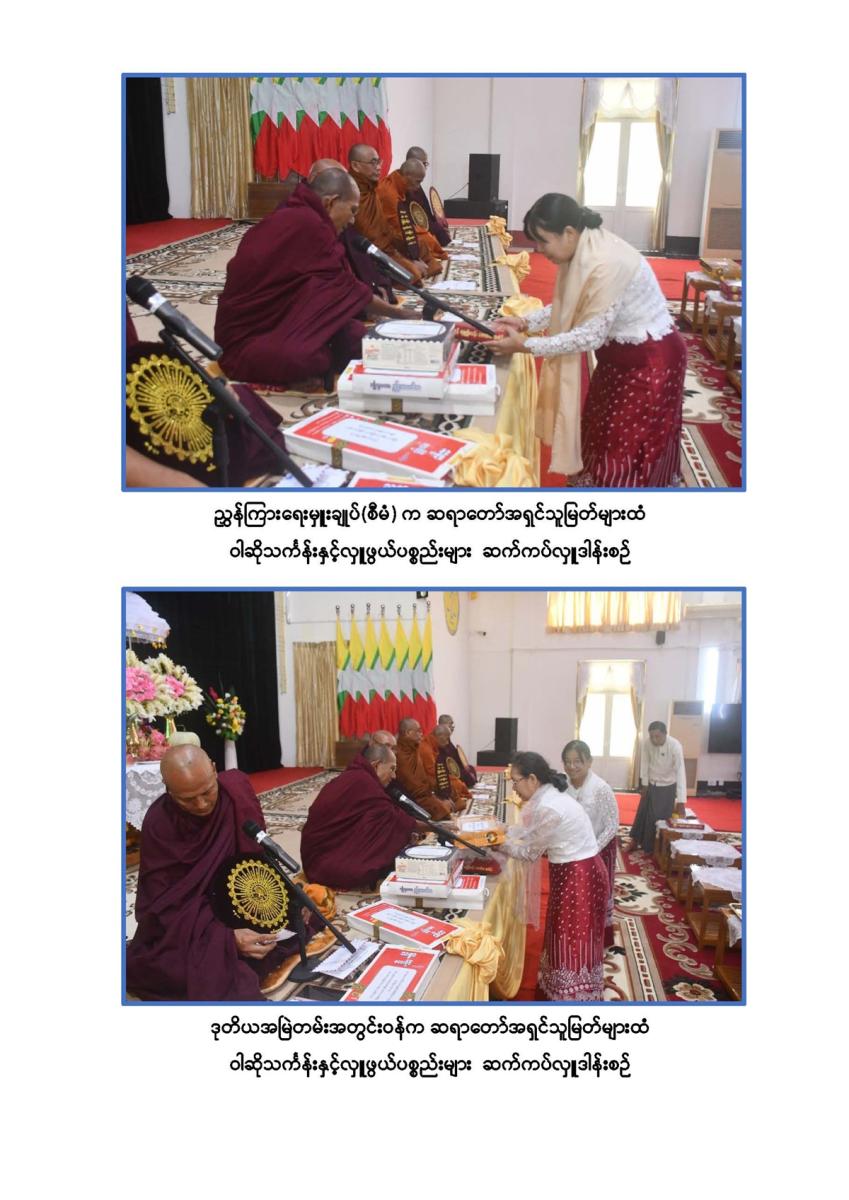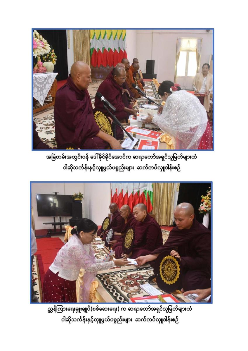 ပြည်ထောင်စုစာရင်းစစ်ချုပ်ရုံး၏(၁၉) ကြိမ်မြောက် ဝါဆိုသင်္ကန်းဆက်ကပ်လှူဒါန်းပွဲ အခမ်းအနားကျင်းပခြင်း