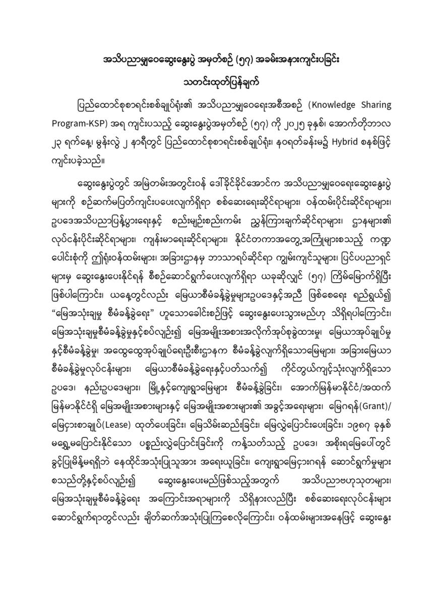 အသိပညာမျှဝေဆွေးနွေးပွဲ အမှတ်စဉ် (၅၇) အခမ်းအနားကျင်းပခြင်း