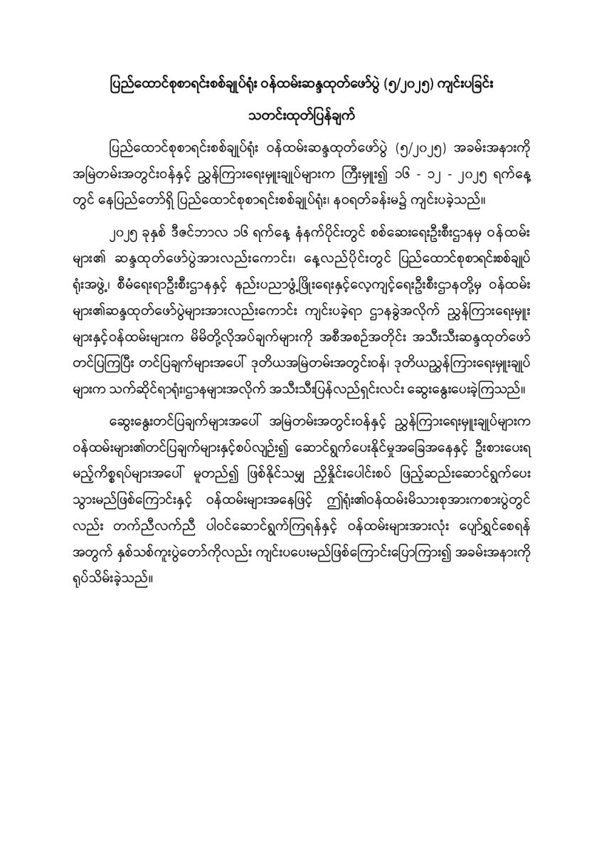 ပြည်ထောင်စုစာရင်းစစ်ချုပ်ရုံး ဝန်ထမ်းဆန္ဒထုတ်ဖော်ပွဲ (၅/၂၀၂၅) ကျင်းပခြင်း