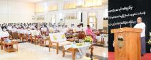 ၅-၃-၂၀၂၃ ရက်နေ့တွင် ၂၀၂၃ ခုနှစ် သာသနာတော်ဆိုင်ရာ ဘွဲ့တံဆိပ်တော်များ ဆက်ကပ်ပူဇော်ပွဲ မဟာမင်္ဂလာ အခမ်းအနားသို့ ပြည်ထောင်စုစာရင်းစစ်ချုပ် တက်ရောက်ခြင်း နှင့် ဝန်ထမ်းများနှင့်အတူ ဆွမ်းဆန်တော်၊ လှူဖွယ်ပစ္စည်းများလောင်းလှူခြင်း
