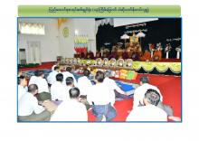 At the ceremony, venerable Buddhist monks from Phayarkyi Monastery and Yadanar Bummithara Monastery in Pyinmana were present and the staff of the Office of the Auditor General of Union led by U Maw Than, Union Auditor General offered Waso robes and provisions to the monks.